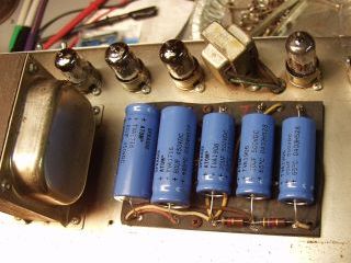 Power supply filter caps restored in 1966 Fender Super Reverb Amp